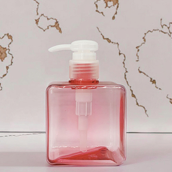 250 מ "ל ורוד פלסטיק בקבוק מרובע צורה מרובעת עם משאבה שקופה בנפרד ארוזה לשימוש בשמפו