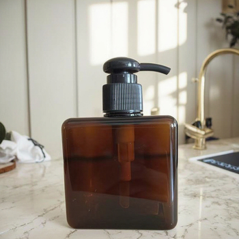 زجاجة بلاستيكية مربعة الشكل مربعة الشكل مع مضخة شفافة معبأة بشكل منفصل لاستخدام الشامبو